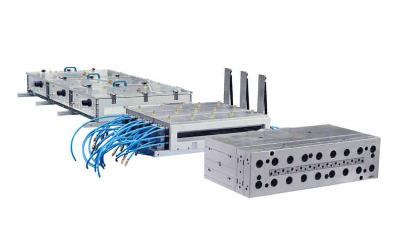 窗臺(tái)板、裝飾板類型材模具:用門窗型材擠出模具技術(shù)設(shè)計(jì)的寬幅板材模具,從出料端再到定型冷卻端的優(yōu)化,確保了穩(wěn)定安全和長(zhǎng)時(shí)間的工作。電動(dòng)和手動(dòng)一體化的定型模開(kāi)啟傳動(dòng)機(jī)構(gòu)。